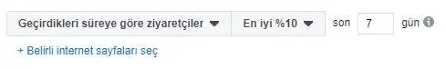 Keza son 7 gün içinde sitede geçirdikleri süreye göre ziyaretçilerin en iyi yüzde 10’luk dilimindeki kitleyi hedef almak da daha verimli bir reklam kampanyası oluşturmanızı sağlar.